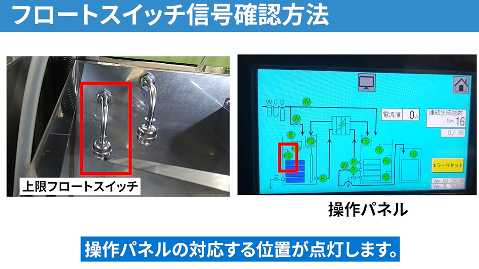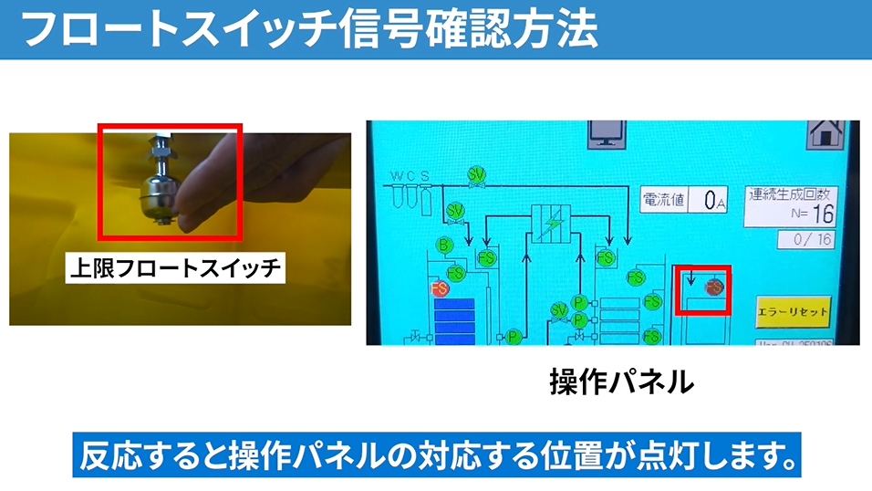 フロートスイッチが正常に反応しておらず、その結果として機器側でエラーが発生しているケースが多く見られました。